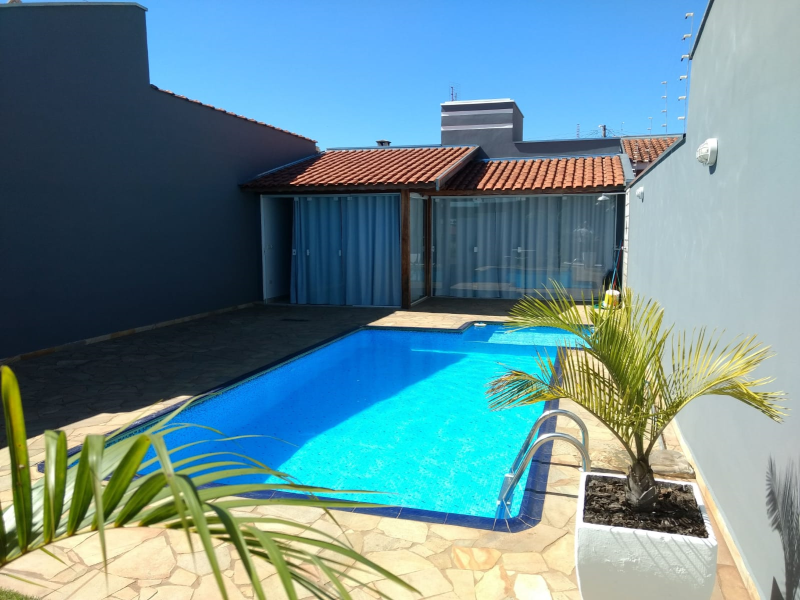 Terreno 140m², construção 60m², piscina 27.000L.